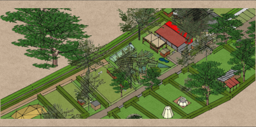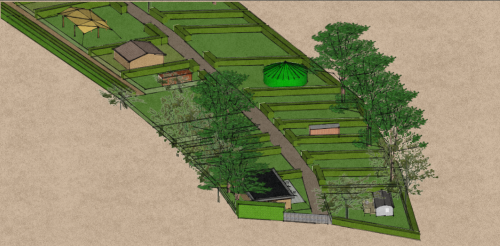 Le jardin en permaculture, assure la fourniture en légumes, plantes et aromates du restaurant, un espace de découverte des plantes à destination principale des enfants et un espace d’initiation aux techniques de la permaculture.